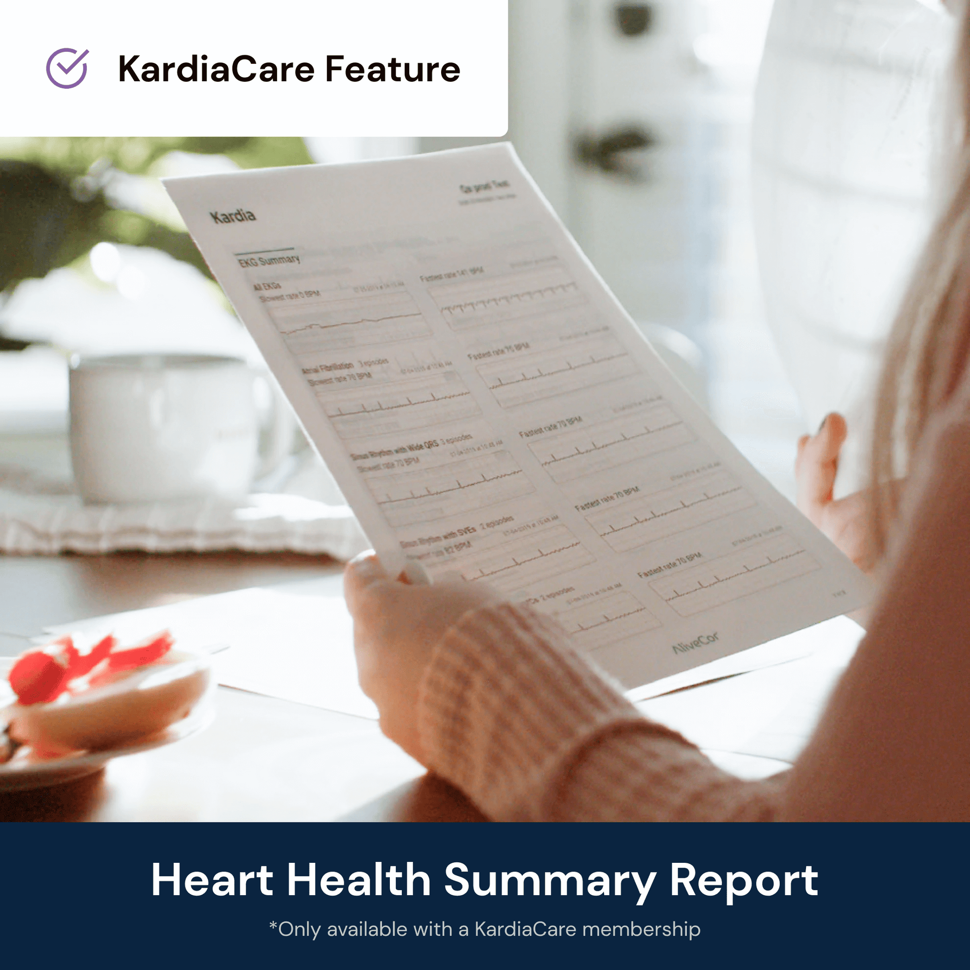 - Evaluate your heart health over time. Create personalized summary reports of your heart data and track your heart health over time. This feature is exclusive to KardiaCare.